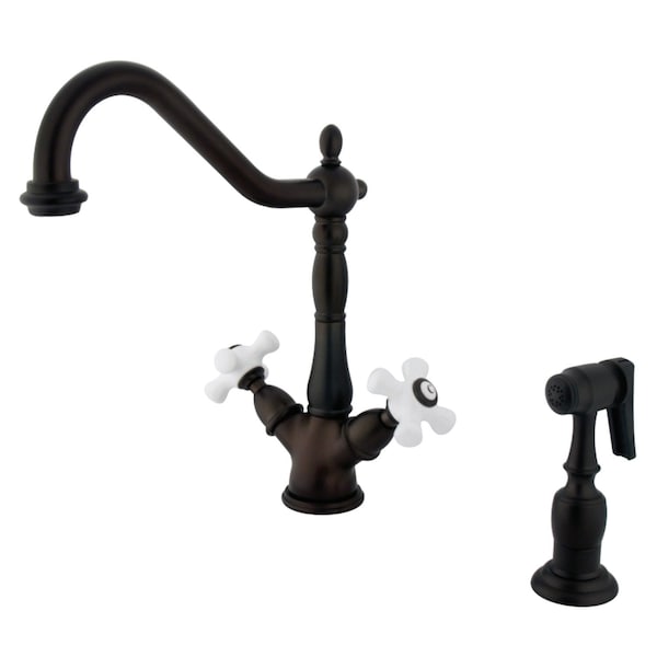 KS1235PXBS 2-Handle Kitchen Faucet W/Brass Sprayer & 8" Plate, Bronze