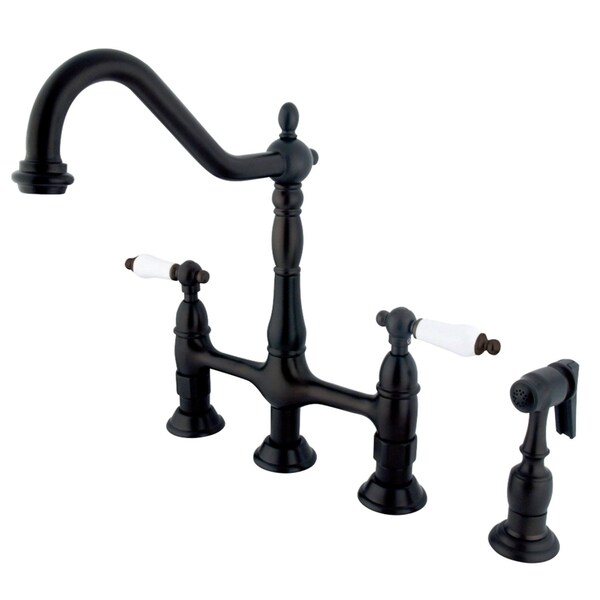 KS1275PLBS Heritage Bridge Kitchen Faucet W/ Brass Sprayer, Bronze