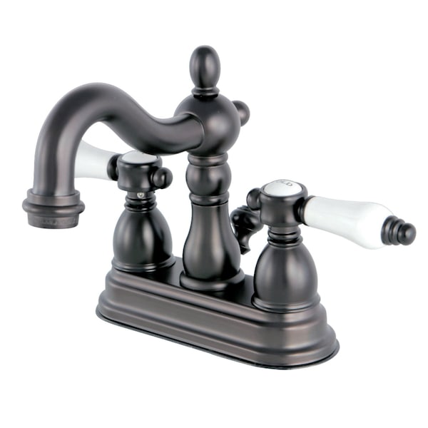 The graceful elegance of timeless design is beautifully merged between British flair and Victorian delicacy within this faucet's white porcelain levers. Centerset bathroom faucets are ideal for smaller bathrooms and feature an easy 3-hole installation. The Bel-Air 4-inch centerset bathroom faucet with brass pop-up and its featured sturdy brass construction and premium oil rubbed bronze finish are guaranteed to glamorize your home's traditional ensemble for years to come. Varnish your bathroom with this state-of-the-art fixture. A matching finish drain is also included.