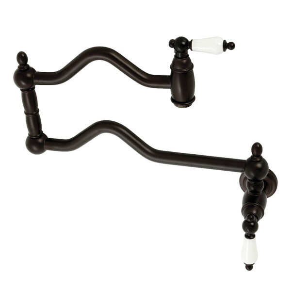 A lavish spark of traditionally stylized glamour is brought to your kitchen ensemble with this beautiful faucet. As an excellent tool to quickly, easily, and stylishly fill pots, eliminate strain on your joints. Pot-fillers are useful gadgets placed directly above the stove, providing easily accessible water. The foldable swing arms of this pot filler allow for extendable reach of up to 22" of length and provide long-lasting function due to their sturdy brass construction. Additionally, the dual handles prevent unwanted water spillage while enhancing the traditional theme.
