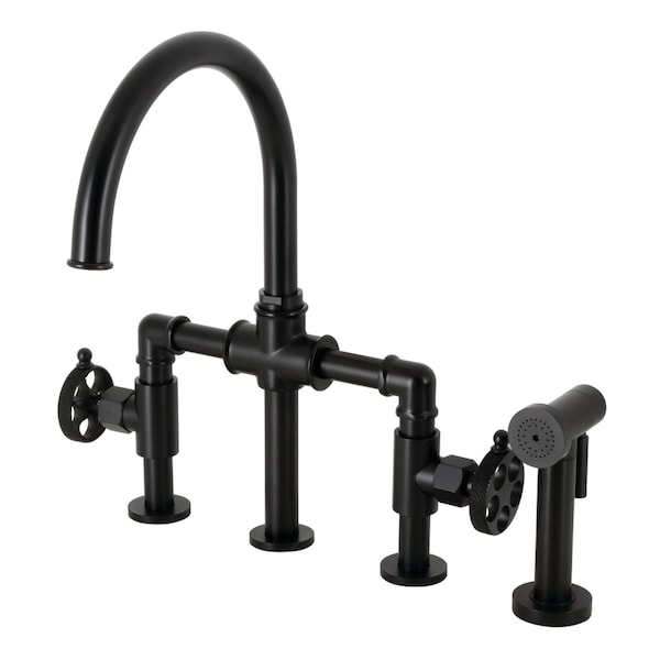 KS2330RKX Bridge Kitchen Faucet with Brass Sprayer, Matte Black