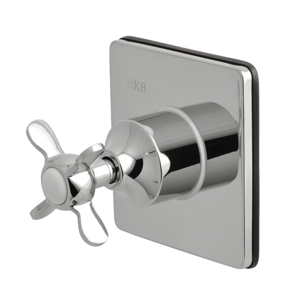 This cross handle, diverter valve and face plate help direct water to divert into three different ways, usually for the shower head, hand shower or tub spout. Each component is crafted with solid brass for durable long-term use. The diverter valve features one inlet to three outlets, to move water to its desired destination. Easy to install, the diverter is usable with hot and cold water and complies with other traditional designs.