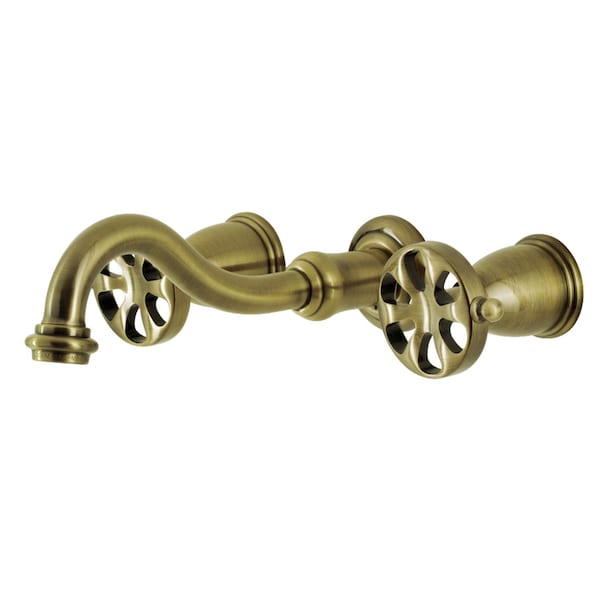 KS3123RX Two-Handle Wall Mount Bathroom Faucet, Antique Brass