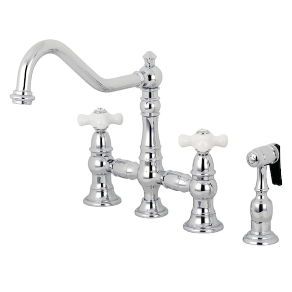 KS3271PXBS Restoration 8" Bridge Kitchen Faucet W/ Sprayer, Chrome