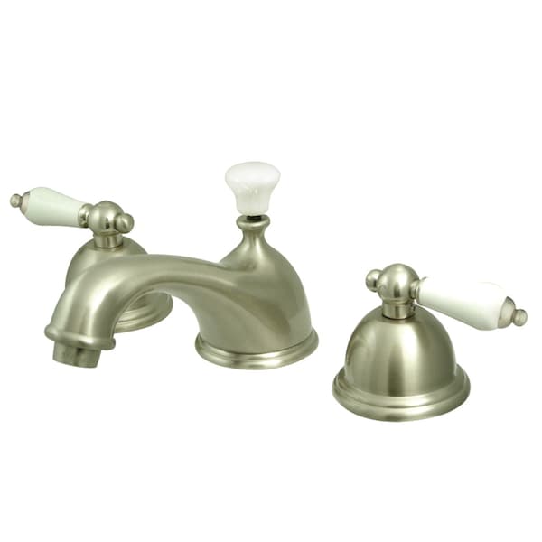 Classical artistry from the late 19th Century to early 20th Century is mirrored beautifully within this faucet's traditional charm. Ideal for more spacious bathrooms, widespread faucets are more spread apart and feature a 3-hole installation. The Restoration 8-inch widespread bathroom faucet with brass pop-up and its featured sturdy brass construction and premium brushed nickel finish are guaranteed to glamorize your home's traditional ensemble for years to come. Bring this faucet to your home to offer a touch of old design and exquisite detail. A matching finish drain is also included.