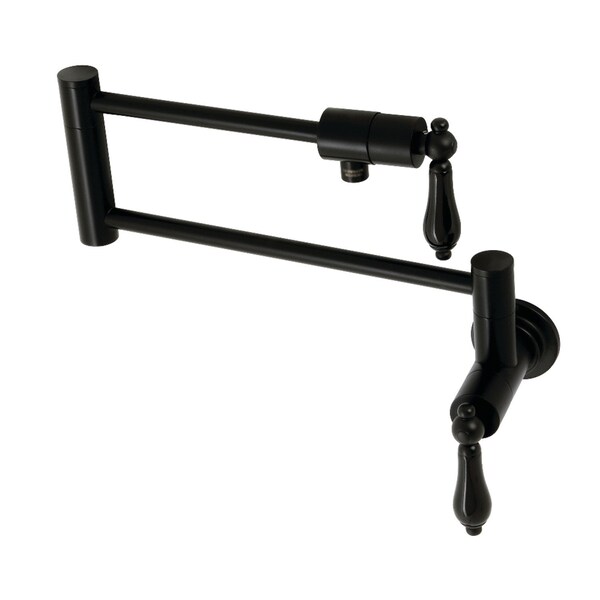 Crafted in commendations to English nobility, the exemplary design of this faucet manifests regality and elegance with its black porcelain handles. As an excellent tool to quickly, easily, and stylishly fill pots, eliminate strain on your joints. Pot-fillers are useful gadgets placed directly above the stove, providing easily accessible water. The foldable swing arms of this pot filler allow for extendable reach of up to 21.5" of length and provide long-lasting function due to their sturdy brass construction. Additionally, the dual handles prevent unwanted water spillage while enhancing the traditional theme.