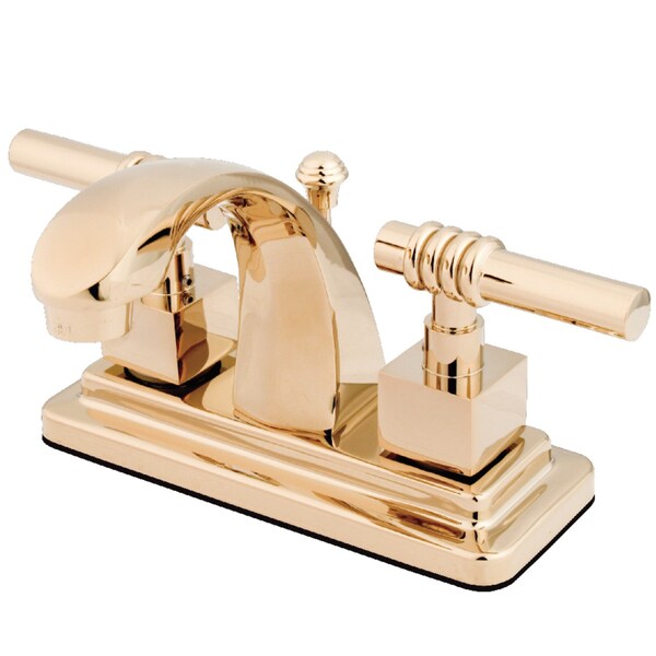 The sophisticated look and flawless design of this bathroom faucet evokes glamorous appeal that's ideal for transitional washrooms. Centerset bathroom faucets are ideal for smaller bathrooms and feature an easy 3-hole installation. The Milano 4-inch centerset bathroom faucet and its featured sturdy brass construction and premium polished brass finish are guaranteed to glamorize your home's modern ensemble for years to come. Traditional aesthetics with modern design are perfectly meshed in this faucet to produce a stunning result. A matching finish drain is also included.