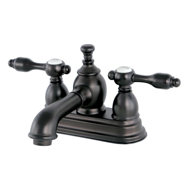 Offering a nod toward the past, this faucet is beautifully inspired by the vintage elegance of mid-19th Century design. Centerset bathroom faucets are ideal for smaller bathrooms and feature an easy 3-hole installation. The Tudor 4-inch centerset bathroom faucet with brass pop-up and its featured sturdy brass construction and premium oil rubbed bronze finish are guaranteed to glamorize your home's traditional ensemble for years to come. A unique and classically enchanting personality is embodied in this centerpiece. A matching finish drain is also included.