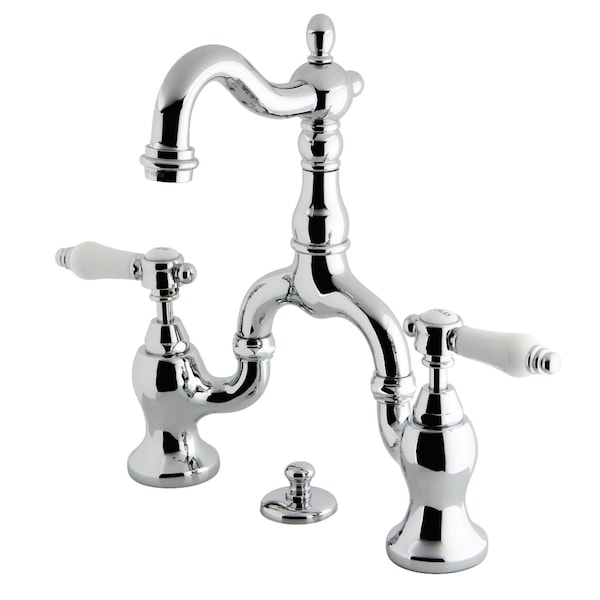The graceful elegance of timeless design is beautifully merged between British flair and Victorian delicacy within this faucet's white porcelain levers. Elegantly designed, the exquisite arch connecting the spout to the handles provides an added aesthetic appeal to make for more of a statement piece. Additionally, the 8-1/16 inch of spout clearance make for a very easy hand washing experience with plenty of room for other tasks. The Bel-Air bridge bathroom faucet and its featured sturdy brass construction and premium polished chrome finish are guaranteed to glamorize your home's traditional ensemble for years to come. Varnish your bathroom with this state-of-the-art fixture. A matching finish drain is also included.