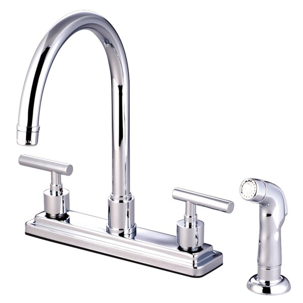 Embellish your contemporary home with the swankiness and elegance that this faucet provides. Easily adaptable to any style, centerset faucets are admired for their single unit and ease of installation. The polished chrome finish will also add a glistening elegance to your kitchen ensemble. A sturdy brass construction and swivel abilities make for a reliant and long lasting fixture. Utilize the included matching finish side-sprayer for convenience in cleaning hard-to-reach areas.