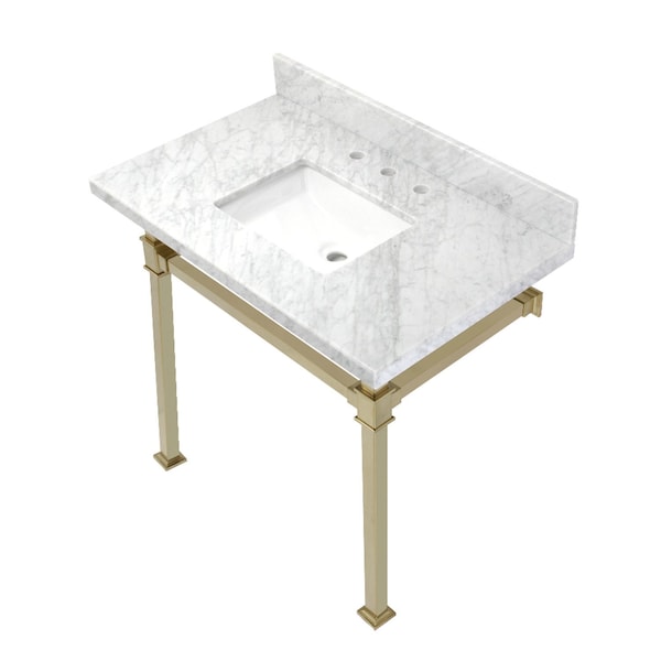 KVPB36MSQ7 36-Inch Carrara Marble Console Sink, Marble White/Brushed Brass