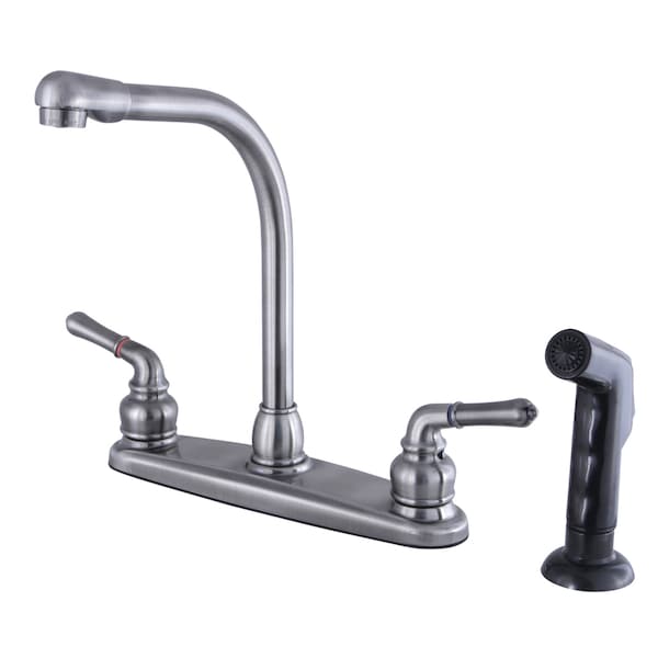 This faucet's modern features create a bold and edgy design in your kitchen. Easily adaptable to any style, centerset faucets are admired for their single unit and ease of installation. The black stainless finish will also add a glistening elegance to your kitchen ensemble. A sturdy brass construction and swivel abilities make for a reliant and long lasting fixture. Utilize the included matching finish side-sprayer for convenience in cleaning hard-to-reach areas.