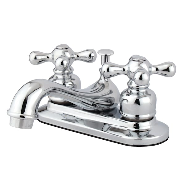 Classical artistry from the late 19th Century to early 20th Century is mirrored beautifully within this faucet's traditional charm. Centerset bathroom faucets are ideal for smaller bathrooms and feature an easy 3-hole installation. The Restoration 4-inch centerset bathroom faucet and its sturdy brass construction and premium polished chrome finish are guaranteed to glamorize your home. A matching finish drain is also included.