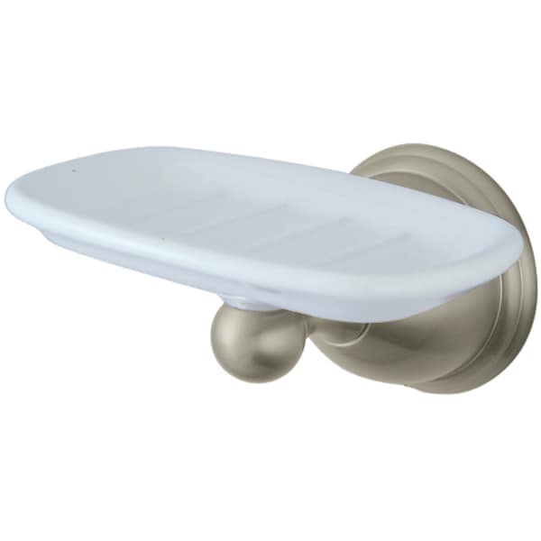Add sophistication and distinctive style to your bathroom with this Kingston Brass wall mount soap dish. Easy to install on the wall adjacent to your tub, this dish is designed to effortlessly reach soap and provide a cleaner bathroom. While embellishing a traditional style, match this accessory to your other brushed nickel bathroom fixtures.