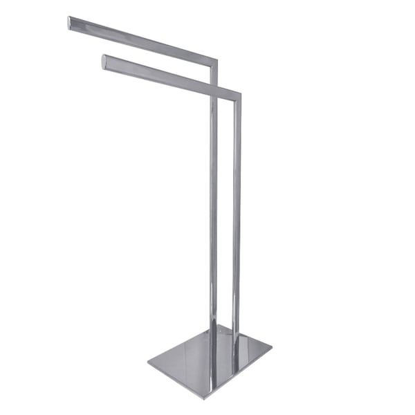Solid iron and stainless steel construction, Freestanding towel holder, Dual 15-13/16" bars for conveniently holding towels, Modern and stylish design, Corrosion-resistant finish, Designed for long-lasting durability