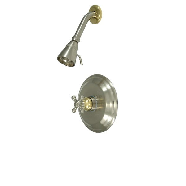 This shower faucet's modern features create a bold and edgy design in your bathroom. Complete with an easy-to-turn cross handle, an optimum bathing experience awaits. Enjoy the sturdy brass construction and premium brushed nickel/polished brass finishes for a fixture that will last for years to come. A pressure balanced valve is included for safety and protection against accidental burns.