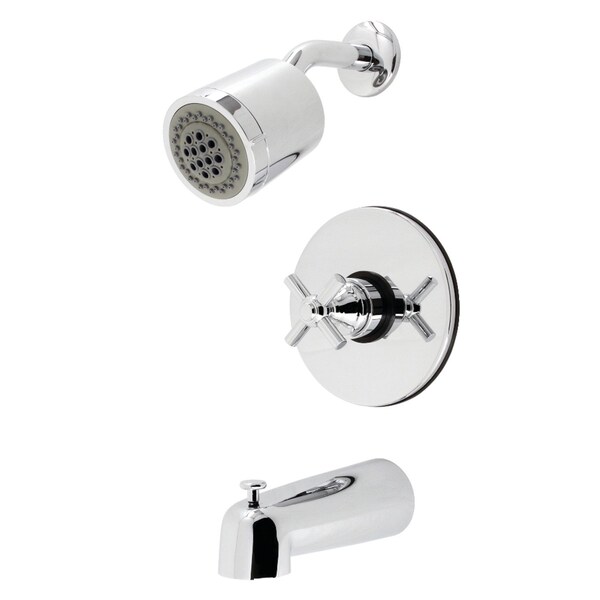 This tub and shower faucet's modern features create a bold and edgy design in your bathroom Complete with an easytoturn cross handle, an optimum bathing experience awaits Enjoy the sturdy brass construction and premium polished chrome finish for a fixture that will last for years to come A pressure balanced valve is included for safety and protection against accidental burns