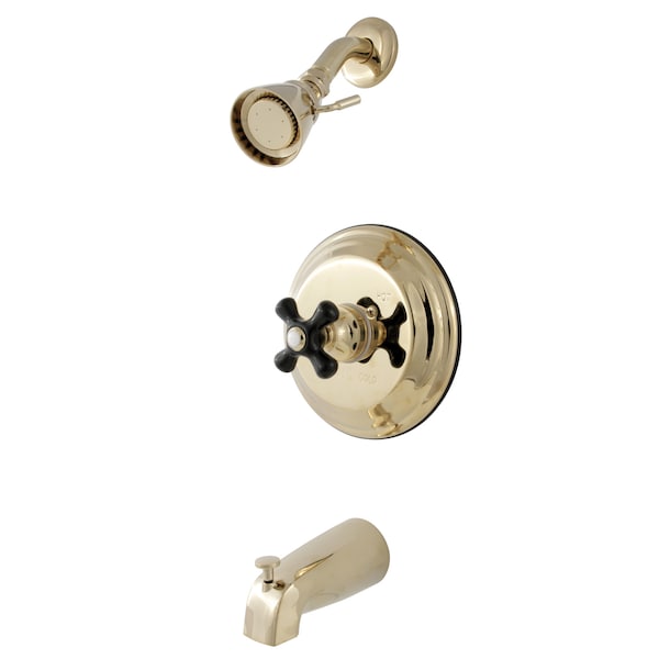 Tub and Shower Faucet, Standard, 3, Wall Mount, Polished Brass