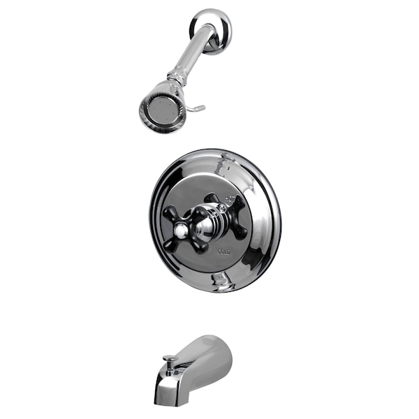 Tub and Shower Faucet, Standard, 3, Wall Mount, Polished Chrome