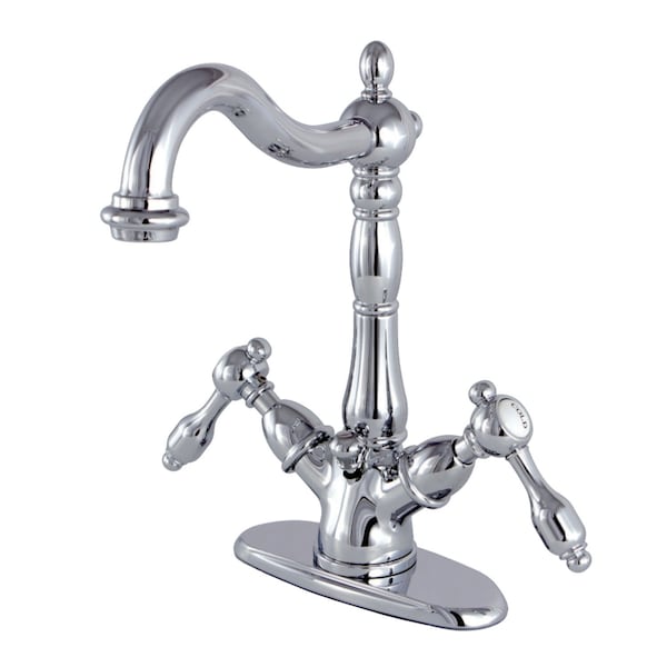 Offering a nod toward the past, this faucet is beautifully inspired by the vintage elegance of mid-19th Century design. Single-hole bathroom faucets with optional deck plates are ideal for smaller bathrooms and feature an easy 1 or 3-hole installation. Remove the deck plate for an ease of cleaning and more streamlined design. The Tudor two-handle bathroom faucet with brass pop-up and cover plate and its featured sturdy brass construction and premium polished chrome finish are guaranteed to glamorize your home's traditional ensemble for years to come. A unique and classically enchanting personality is embodied in this centerpiece. A matching finish drain is also included.