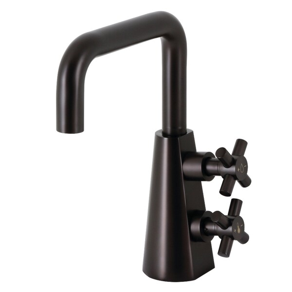 The Cannon faucet in Kingston Brass's Cosntantine collection is designed to make a bold statement. The unique vertical stacked handle design allows for independent control of temperature and flow in a compact, single hole form factor. The top handle controls flow volume while the bottom handle controls temperature through a ceramic disc cartridge. The clean lines and geometric D-spout create a powerful contemporary silhouette without sacrificing utility. Solid brass construction and high grade oil rubbed bronze finish assure the longevity of your fixture. Includes finish match pop-up drain to perfectly coordinate your bathroom.