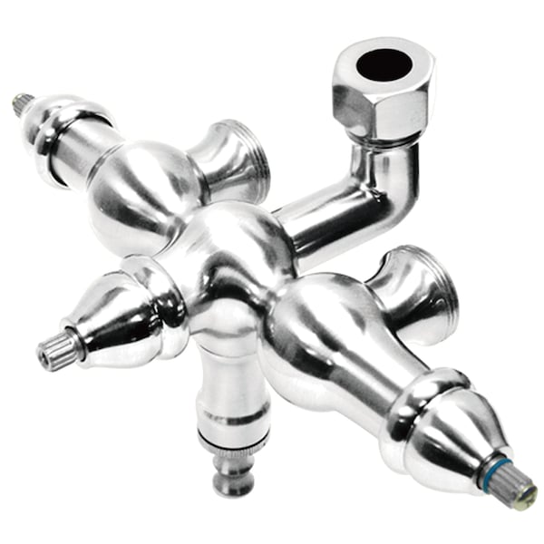 This faucet body is designed for clawfoot tubs can be used wall mounted or deck mounted with the addition of the appropriate elbows and fittings, includes integral diverter and downspout, manufactured out of solid brass and equipped with a ceramic cartridge this faucet will give you many years of trouble-free performance.