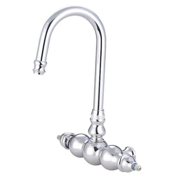 This gooseneck faucet body is designed for clawfoot tubs can be used wall mounted or deck mounted with the addition of the appropriate elbows and fittings, includes integral diverter and outlet for shower riser, manufactured out of solid brass and equipped with a ceramic cartridge this faucet will give you many years of trouble-free performance.