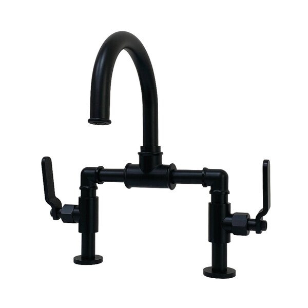 The exquisite design of this faucet tastefully flatters the elegant architecture of traditional homes with its fine detailing. Elegantly designed, the exquisite arch connecting the spout to the handles provides an added aesthetic appeal to make for more of a statement piece. Additionally, the 7-15/16 inch of spout clearance make for a very easy hand washing experience with plenty of room for other tasks. The Whitaker industrial style lever handle bridge bathroom faucet and its featured sturdy brass construction and premium matte black finish are guaranteed to glamorize your home's traditional ensemble for years to come. A matching finish push pop-up drain is also included.