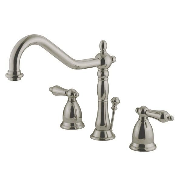 A lavish spark of traditionally stylized glamour is brought to your bathroom ensemble with this beautiful faucet. Ideal for more spacious bathrooms, widespread faucets are more spread apart and feature a 3-hole installation. The Heritage 8-Inch Widespread Bathroom Faucet with Brass Pop-Up and its sturdy brass construction and premium brushed nickel finish are guaranteed to glamorize your home. A matching finish drain is also included.