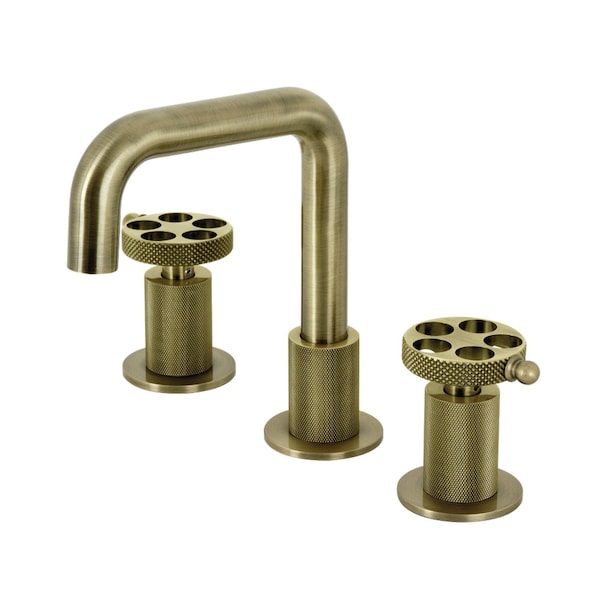 This faucet's modern features create a bold and edgy design in your bathroom Ideal for more spacious bathrooms, widespread faucets are more spread apart and feature a 3hole installation The Webb widespread bathroom faucet and its featured sturdy brass construction and premium antique brass finish will glamorize your home's modern ensemble for years to come A matching finish push popup drain is also included