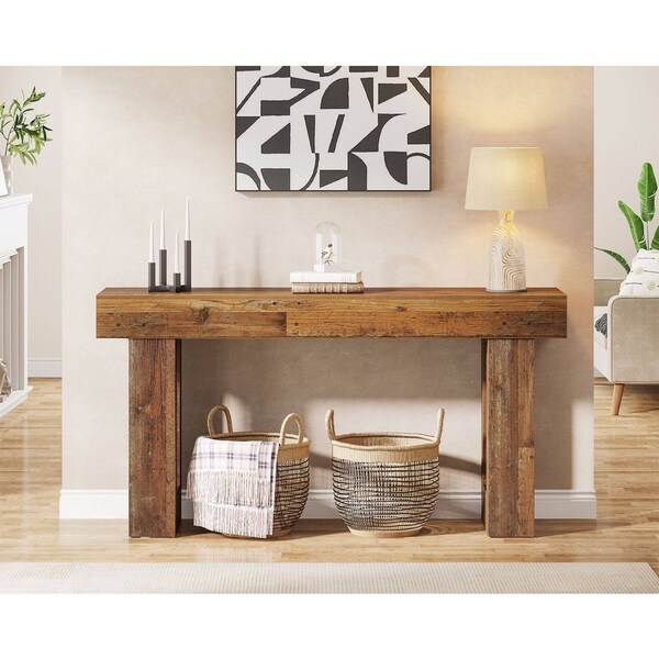 63'' Farmhouse Console Table, Rustic Mix Brown Extra Long Narrow Sofa Table