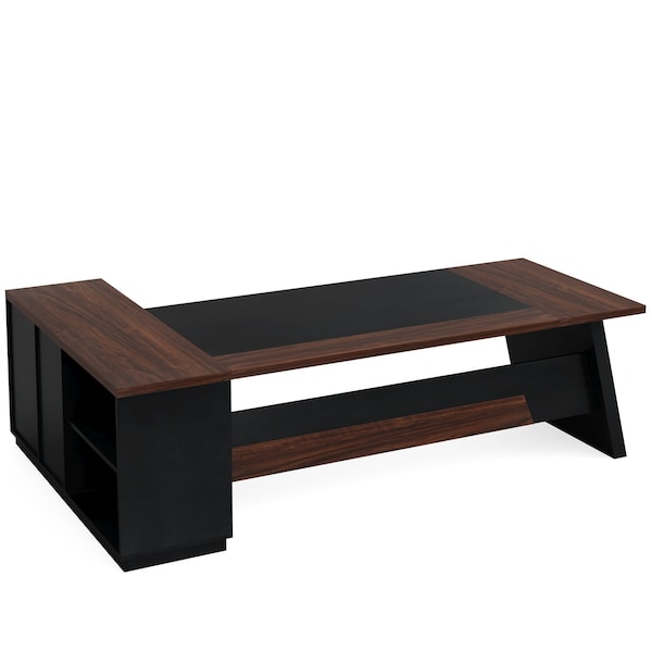 71'' Farmhouse Dining Table, Brown & White Rectangular Kitchen Table for 6-8 People