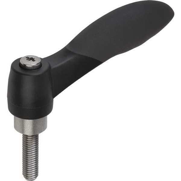 Adjustable Handle, Handle Type Hard and Soft Touch, Handle Material Fiberglass-Reinforced Plastic, Components Material Stainless Steel, Color Black, Thread Size M6, Thread Standard Metric, Screw Length 20.00mm, Overall Height 53.5 mm, Overall Length 48.1 mm, Thread Type External, Features Die Cast Zinc Toothed Ring, Thermoflex Based on SEBS, Standards RoHS, Mounting Type Threaded Stud