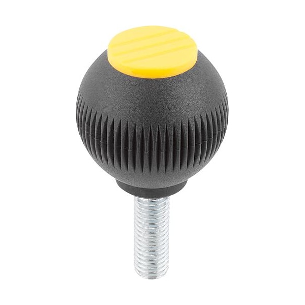 Spherical Knob Size: 1, D1=25 D=1/4-20X30, Thermoplastic Black RAL 7021, Components: Stainless Steel. Note: all KIPP measurements are expressed in millimeters (mm) except for threads and bores on inch products, which are expressed in inches.