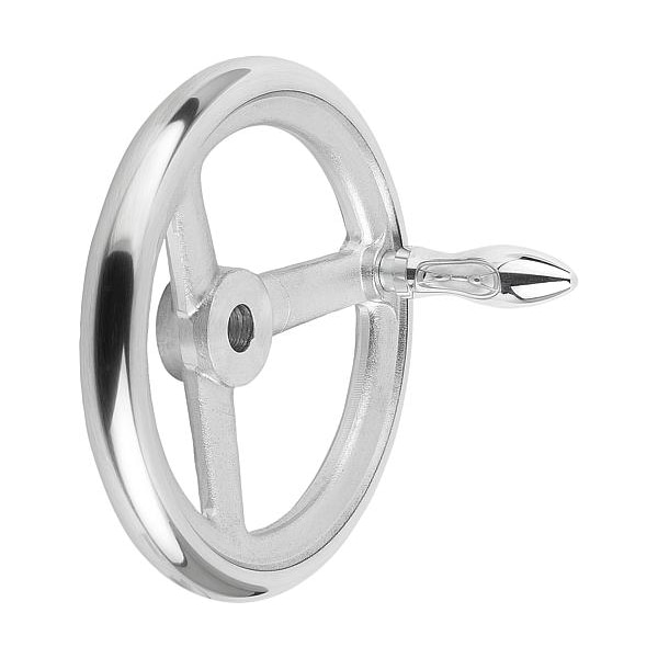 Handwheel, DIN 950, Aluminum 3-spoke, Diameter D= 100 mm, Bore D2= 0.5", Revolving Handle
