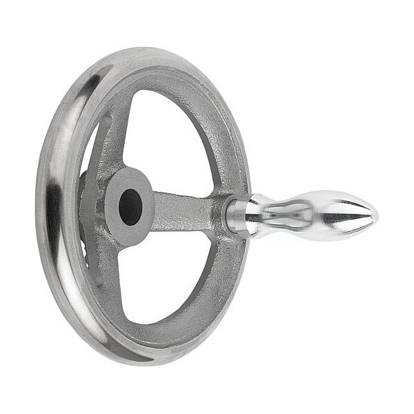 Handwheel, DIN 950, D1= 400 mm, Bore D2= 1, Gray Cast Iron, Machine Handle Revolving, Steel