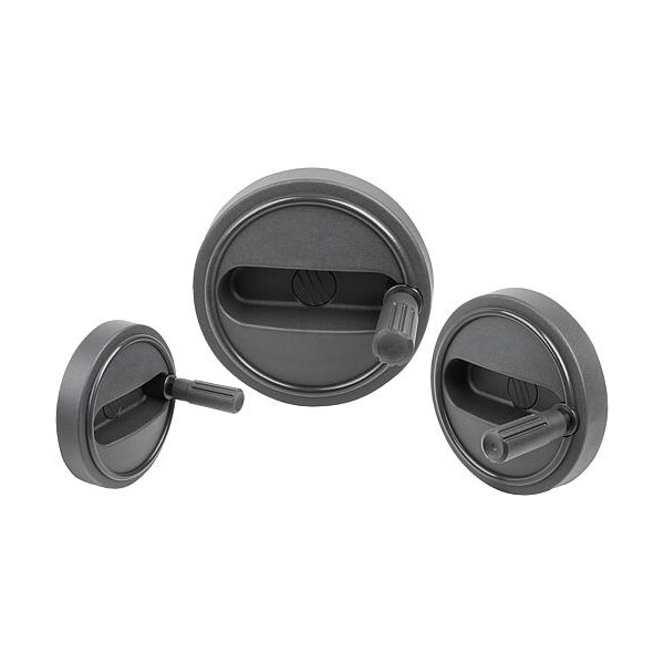 Handwheel D1=80, Reamed Hole D2=10H7, Size:1, Thermoplastic, Comp:Thermoplastic, Revolving Grip