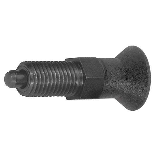 Indexing Plunger, Thread Size 3/4 In.-10, Thread Length 23 mm, Nose Shape Pin, Plunger Material Steel, Plunger Dia. 10.00mm, Plunger Projection 10 mm, Mounting Type Not Applicable, With Locking Plunger No, Body Length 64 mm, Final Nose Force 40 N, Initial Nose Force 15 N, Overall Length 74 mm, Plunger Width 10 mm, Handle Type Mushroom Knob, Body Finish Black Oxide, Body Material Steel, Handle Color Black, Handle Material Thermoplastic, Plunger Finish Black Oxide, Retractable Yes