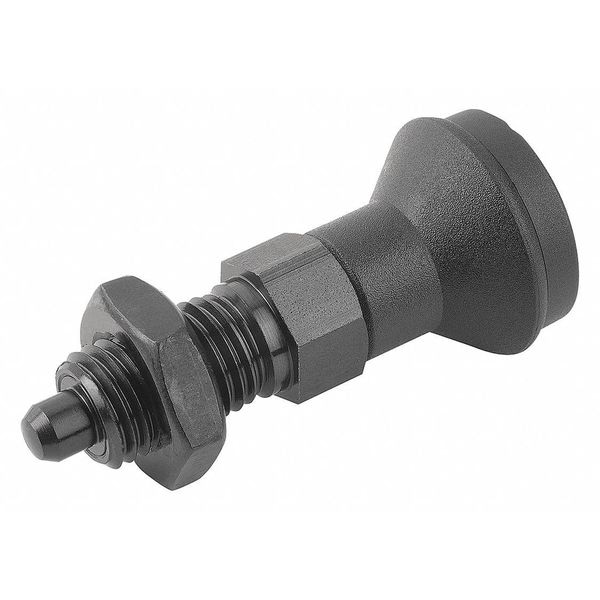 Indexing Plunger D1= M10X1, D=5, Style B, Non-Lockout w Locknut, Steel Hardened, Knob Plastic Black