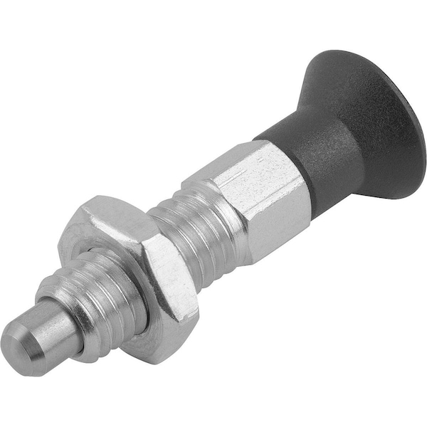 Indexing Plunger Eco Size:2 D1=M10, D=6, Form:B Wo. Groove W Locknut, Steel Not Hard, Comp: Plastic