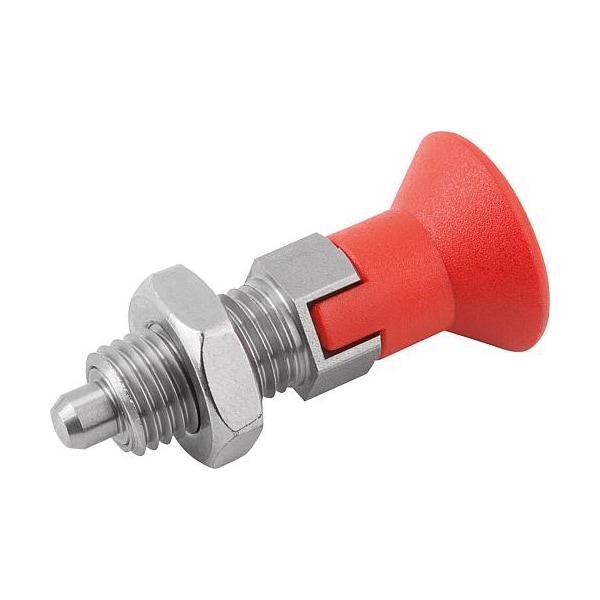 Indexing Plunger Red D1= 1/4-28, D=3, Style D, Lockout Type w Locknut, Stainless Steel Not Hardened