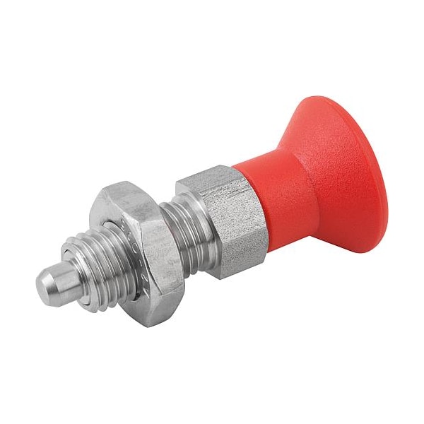 Indexing Plunger Red D1= 3/4-10, D=10, Style B, Non-Lockout w Locknut, Stainless Steel Hardened