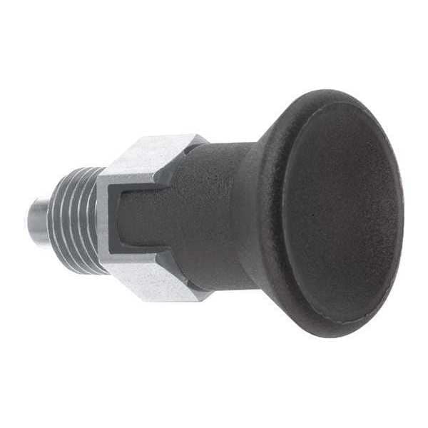 Indexing Plunger, Thread Size 1/2 In.-13, Thread Length 10 mm, Nose Shape Pin, Plunger Material Stainless Steel, Plunger Dia. 6.00mm, Plunger Projection 6 mm, Mounting Type Not Applicable, With Locking Plunger Yes, Body Length 35.7 mm, Final Nose Force 14 N, Initial Nose Force 6 N, Overall Length 41.7 mm, Plunger Width 14 mm, Handle Type Mushroom Knob, Body Finish Uncoated, Body Material Stainless Steel, Handle Color Black, Handle Material Thermoplastic, Plunger Finish Uncoated, Retractable Yes
