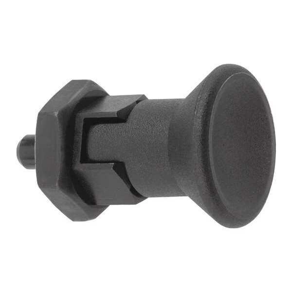 Indexing Plunger, Thread Size M16x1.5, Thread Length 12 mm, Nose Shape Ball, Plunger Material Stainless Steel, Plunger Dia. 8.00mm, Plunger Projection 8 mm, Mounting Type Not Applicable, With Locking Plunger Yes, Body Length 46 mm, Final Nose Force 28 N, Initial Nose Force 14 N, Overall Length 54 mm, Plunger Width 8 mm, Thread Pitch 1.5 mm, Handle Type Knob, Body Finish Uncoated, Body Material Stainless Steel, Handle Color Black, Handle Material Thermoplastic, Plunger Finish Black Oxide