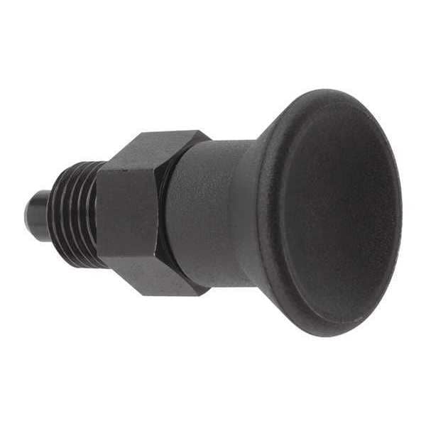 Indexing Plunger, Thread Size 3/4 In.-10, Thread Length 15 mm, Nose Shape Pin, Plunger Material Steel, Plunger Dia. 10.00mm, Plunger Projection 10 mm, Mounting Type Not Applicable, With Locking Plunger No, Body Length 51 mm, Final Nose Force 32 N, Initial Nose Force 15 N, Overall Length 61 mm, Plunger Width 22 mm, Handle Type Mushroom Knob, Body Finish Black Oxide, Body Material Steel, Handle Color Black, Handle Material Thermoplastic, Plunger Finish Black Oxide, Retractable Yes