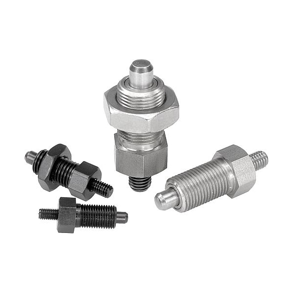 Indexing Plunger, threaded pin, inch, 3/8-16. Steel, hardened.