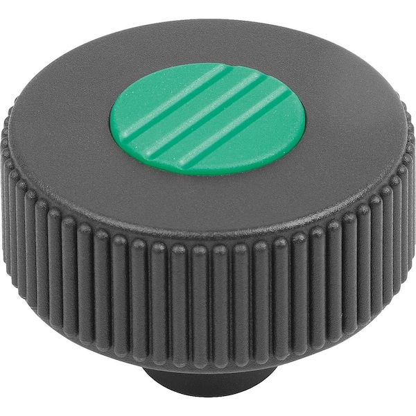 Knurled Knob Size:1, D1=40 D=M08 , Form:K, Plastic Black Ral7021, Comp:Steel, Cap:Green Ral6032