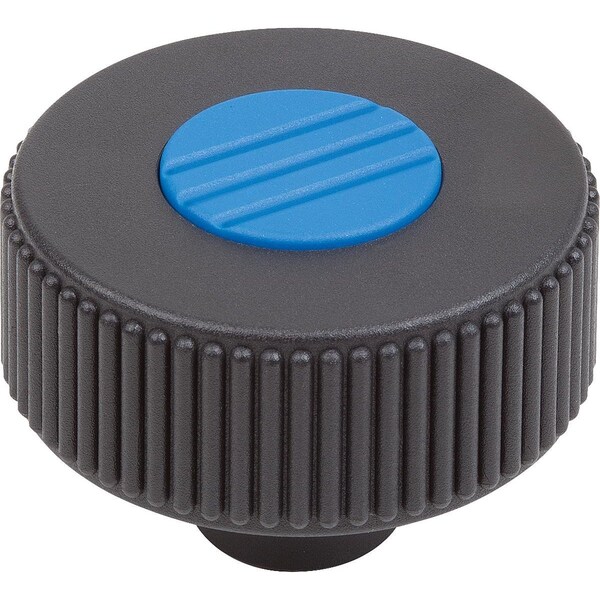 Knurled Knob Size:2, D1=50D=8 , Form:H, Thermoplastic Black Ral7021, Comp:Steel, Cap:Blue Ral5017