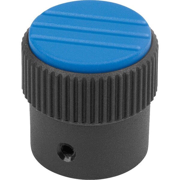 Knurled Knob Size:3, D1=34, H=36, D=8, Form:A, Thermoplastic Black Ral7021, Cap:Blue Ral5017