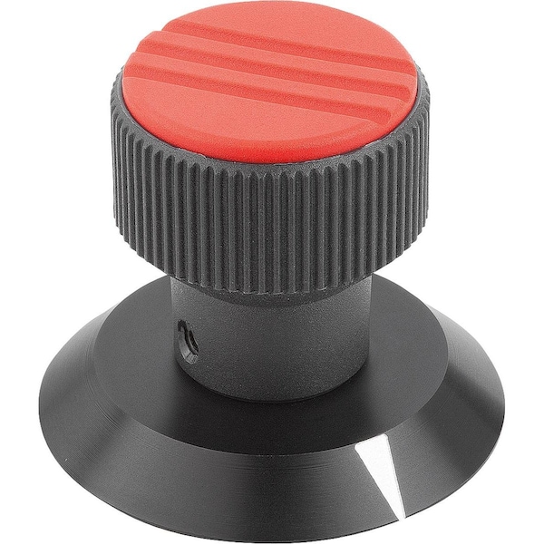 Knurled Knob W Arrow Size:1, D1=21, H=26, 5, D=5, Plastic Black, Comp:Aluminum, Cap:Red